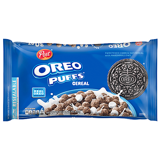 Kick off your morning with the delicious, chocolatey taste of OREO PUFFS™ Cereal. This unique OREO® cereal combines crunchy, chocolatey cereal puffs made from real OREO® cookie wafers with sweet marshmallows, delivering a breakfast experience the whole family can enjoy. Each spoonful packs the iconic flavor of OREO® cookies, making every bite as good as the last. Perfect at breakfast, as a snack, or a base for homemade desserts, OREO PUFFS™ Cereal is a tasty way to start any day with a touch of fun and sweetness. Bring the classic flavor of OREO® cookies into your morning with each delicious bowl!
